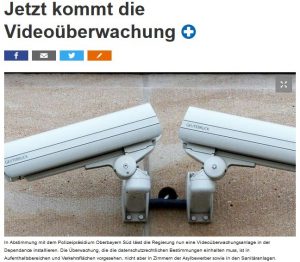 Das Oberbayrische Volksblatt berichte am 23.10.2018 aus dem ANKER-Zentrum in Waldkraiburg: „In Abstimmung mit dem Polizeipräsidium Oberbayern Süd lässt die Regierung nun eine Videoüberwachungsanlage in der Dependance installieren. Die Überwachung… ist in Aufenthaltsbereichen und Verkehrsflächen vorgesehen, nicht aber in Zimmern der Asylbewerber sowie in den Sanitäranlagen.“