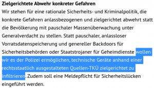 „ DEUTSCHLAND. ALLES IST DRIN.“ – im Programmentwurf der Grünen zur Bundestagswahl 2021: Auch die „rechtsstaatlich ausgestaltete Quellen-TKÜ“