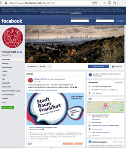 Die Facebook-Fanpage der Stadt Frankfurt besteht weiter fort, obwohl es nach Bewertung des behördlichen Datenschutzbeauftragten der Stadt Frankfurt „hier oftmals an den erforderlichen Rechtsgrundlagen fehlt und Daten somit auch an die sozialen Medien, die ihren Sitz regelmäßig auch noch in datenschutzrechtlich unsicheren Drittländern (wie bspw. den USA) haben, übermittelt“ werden.