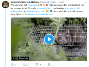Am 18.07.2019 hat die Hessische Umweltministerin Priska Hinz (Grüne) die Facebook-Fanpage @umwelthessen neu gestartet.