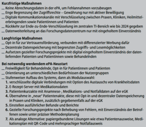 Er macht zugleich Vorschläge zur Anpassung der Regelungen für die ePA, die die genannten Kritikpunkte aufgreifen: