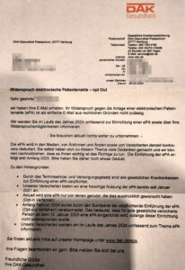 Diese Frage bewegt derzeit viele gesetzlich krankenversicherte Menschen. Ein Versicherter, der auf „Nummer Sicher“ gehen wollte, hatte sich nach Verabschiedung der entsprechenden gesetzlichen Änderungen durch das Gesundheitsdatennutzungsgesetz (GDNG) und das Digitalgesetz (DigiG) an seine Krankenkasse gewandt, um der Anlage einer elektronischen Patientenakte (ePA) für sich rechtzeitig zu widersprechen. Er erhielt zwischenzeitlich eine Stellungnahme seiner Krankenkasse, die er der Redaktion dieser Homepage zur anonymisierten Veröffentlichung zur Verfügung stellte. Sie ist hier im Wortlaut nachlesbar: