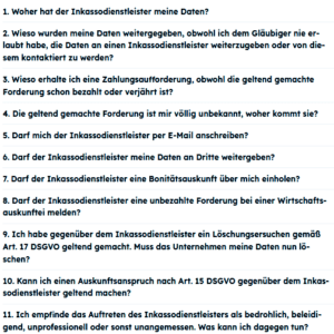Unter diesem Titel hat der Hamburgischer Datenschutzbeauftragte am 19.02.2026 Informationen (Fragen und Antworten) veröffentlicht. Sie sind auch für Betroffene von Inkasso-Unternehmen aus anderen Bundesländern von Interesse.