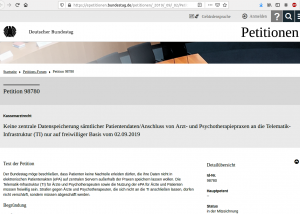 Unterzeichnen Sie die Bundestagspetition “Gesundheitsdaten in Gefahr”! Veröffentlicht auf der Homepage des Bundestags