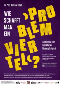 Im Zentrum steht die Frage, wie das Bahnhofsviertel als „Problemviertel“ beständig (re-)produziert wird und welche Interessen, Machtverhältnisse und Regierungsweisen sich darin widerspiegeln. Gleichzeitig richtet die Konferenz den Blick auf alltägliche Akte des Widerstands, der Solidarität und der Möglichkeit, urbane Räume anders zu denken und zu gestalten.